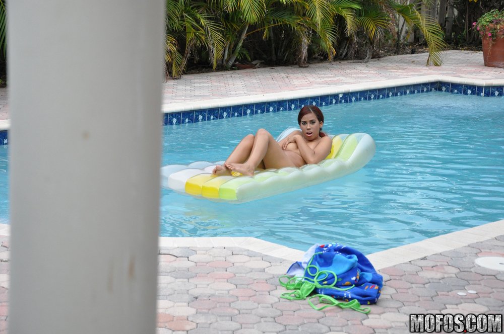 Sweet black girl gets nasty by the pool with her handsome lover. She sucks his fine meat pole