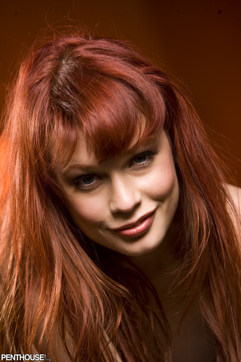 Nasty redhead Justine Joli with tight butt and shaved twat playing with dildo.