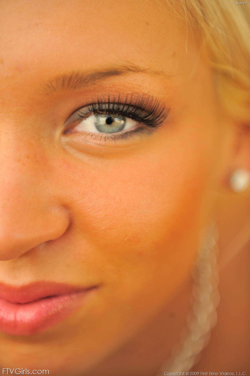Beautiful blond babe, Kacey Jordan gets off her clothes and rides her sex toy.