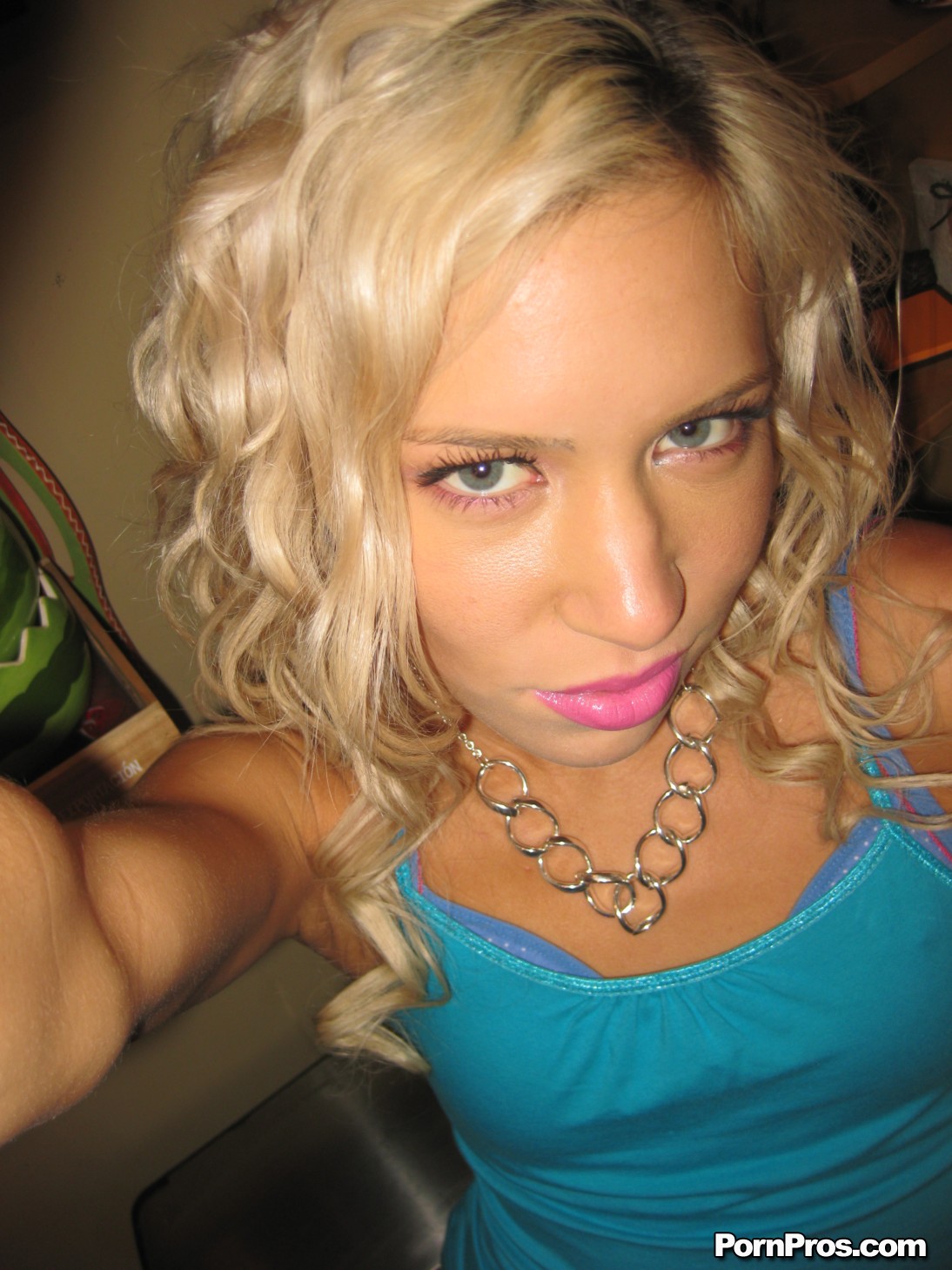 Curly haired blonde darling gets her tight twat nailed in a few sex positions and she loves it