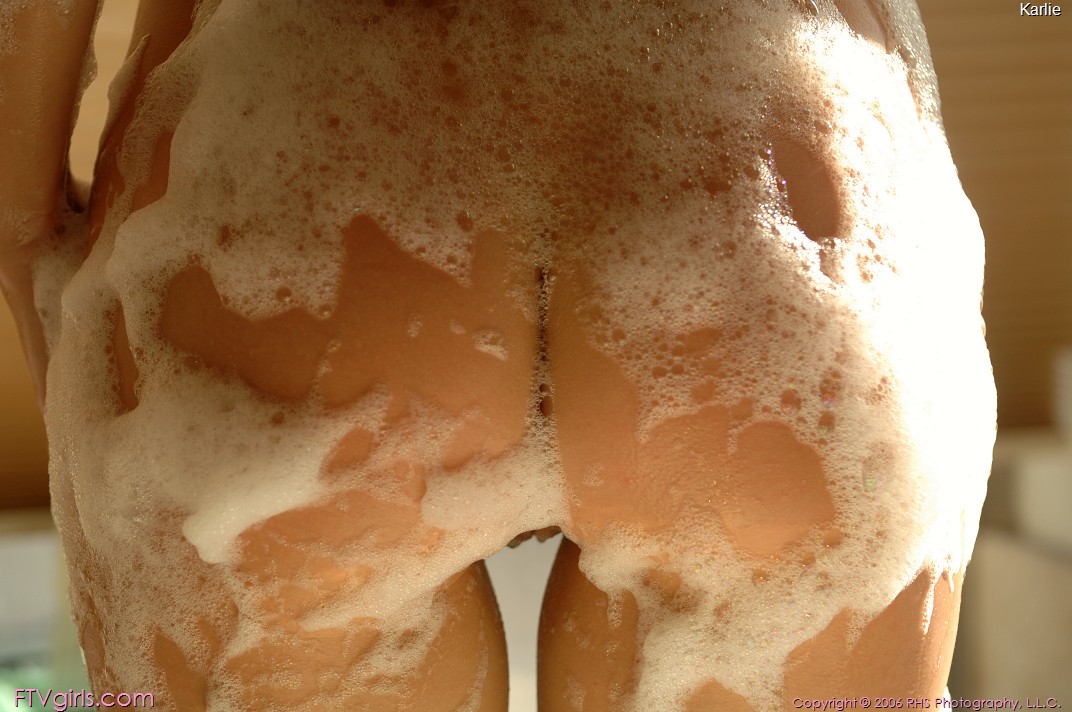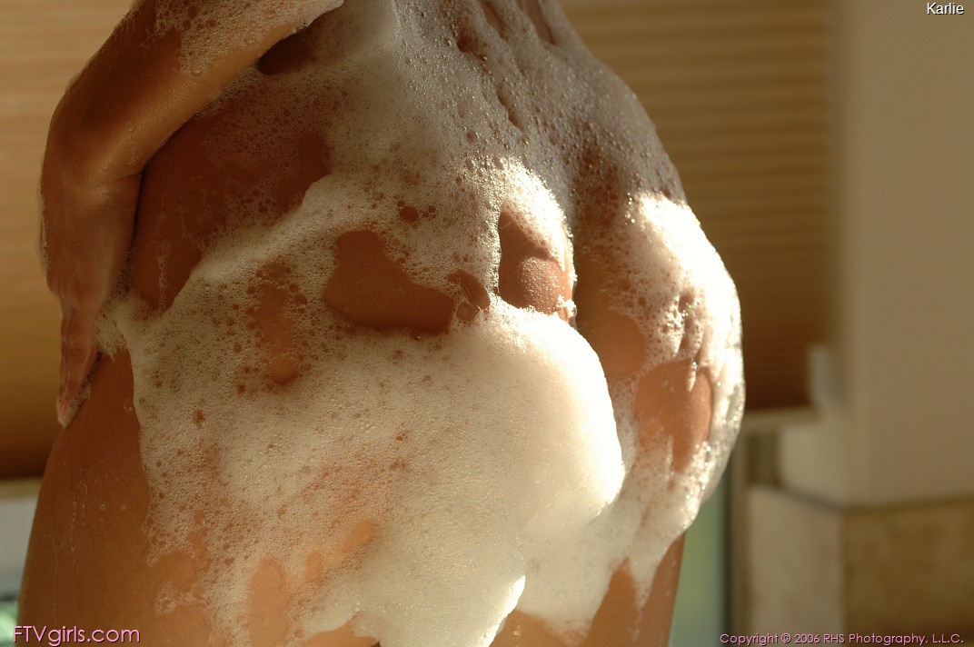 Sexy and horny brunette babe, Karlie Montana taking a shower and shows her pussy.