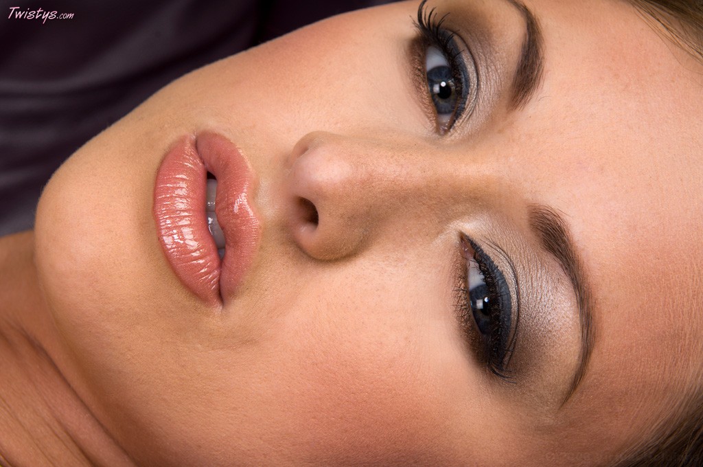 Karlie Montana strips her yellow provocative underwear and masturbates on the sofa.