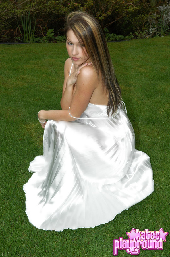 Busty blonde Kates Playground takes off her wedding gown and shows her boobs.