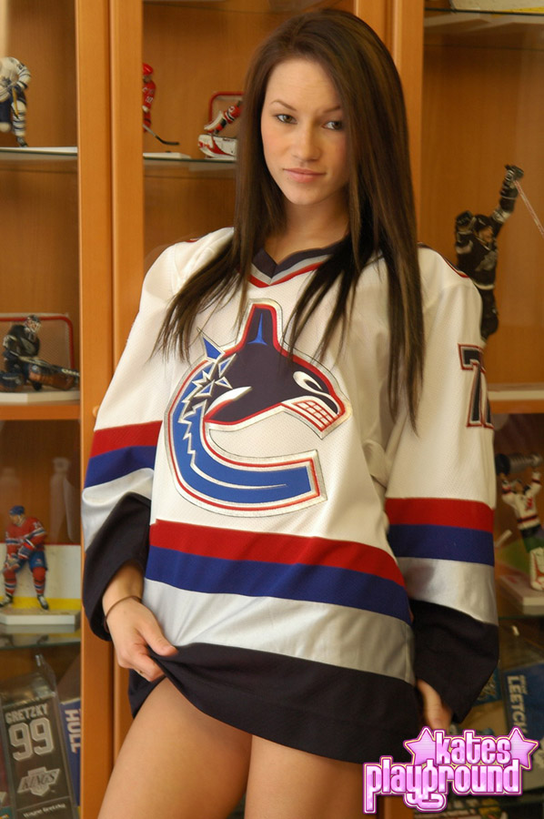 Foxy teen chick from Kates Playground strips her lace panties and shows her butt.
