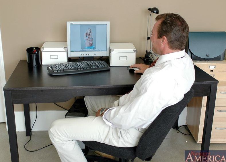 Horny blonde gal Katie Morgan makes out with her horny hung passionate doctor.