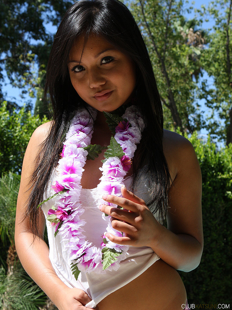 Hot big breasted bitches Katsuni and Lana share a huge fat cock by the pool.