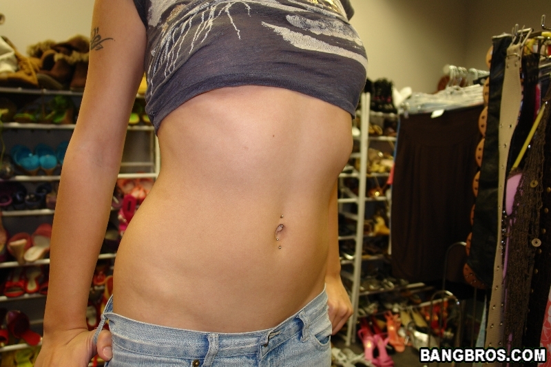 Gorgeous teen gal shows her hot body in the shop and gets down for some dirty business