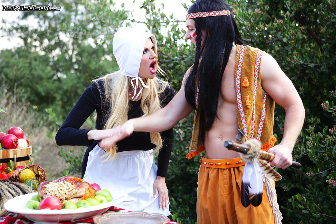 Big breasted blonde slut Kelly Madison gets brutally fucked by native american.