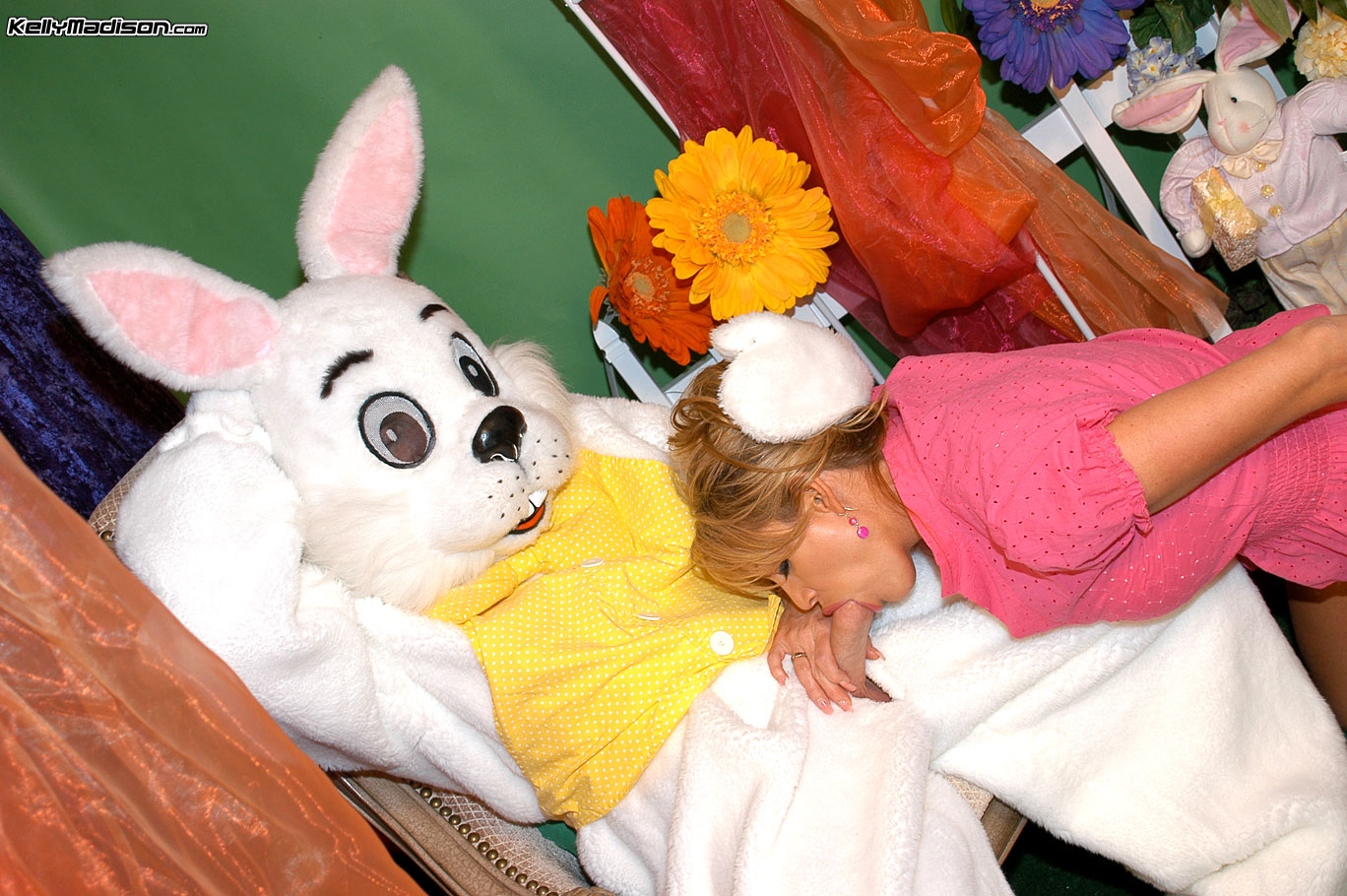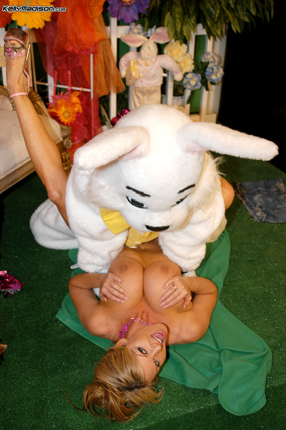 Busty blonde slut Kelly Madison blows cock and gets fucked by costumed stud.