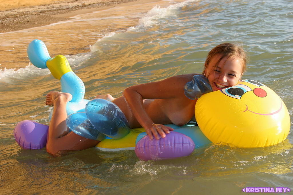 Attractive model Kristina Fey strips on the beach and shows her curvy tanned body.