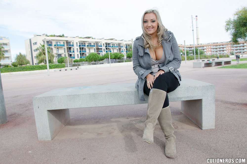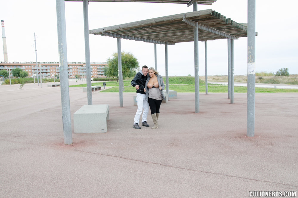 This lustful bimbo gets nailed in public by a very lucky dude, her boobies are just perfect