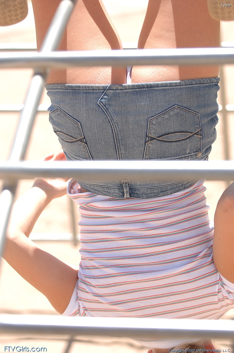 Kylee Reese shows her nasty pussy and tiny tits while posing on teh playground.