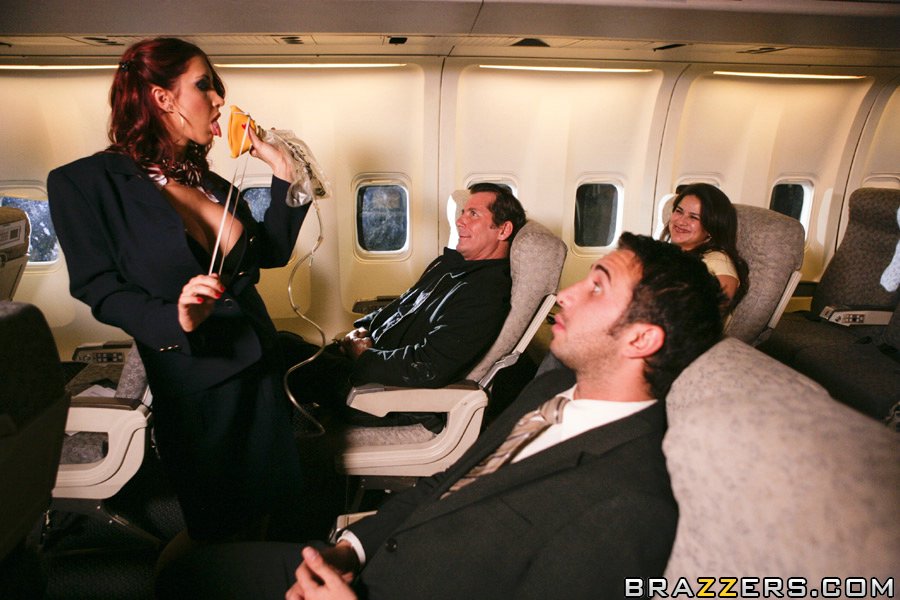 Sexy stewardess, Kylee Strutt gets huge facial after teasing cock for very long.