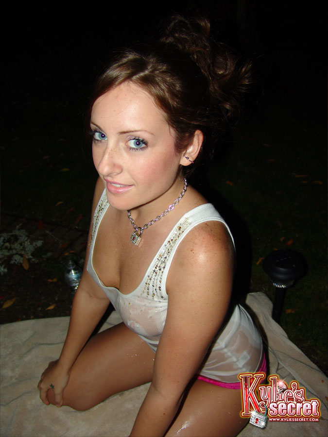 Hot small breasted teen Kylie's Secret takes off her pink thongs and shows her cunt.