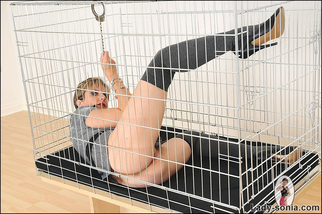Lady Sonia strips her sexy lingerie before the camera and fingers her wet bush.