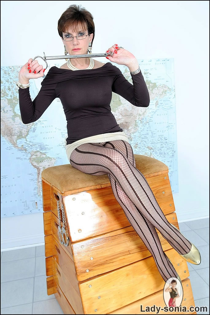 Lady Sonia takes all of her clothes before the camera and teases in stockings.