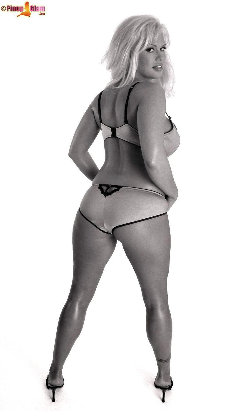 Busty blonde LaTasha Marzolla posing with her huge melons in sexy underwear.