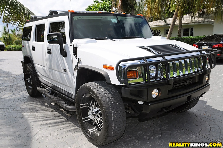 Sexy brunette Lee Madison in white t-shirt getting fucked doggy style outdoor.