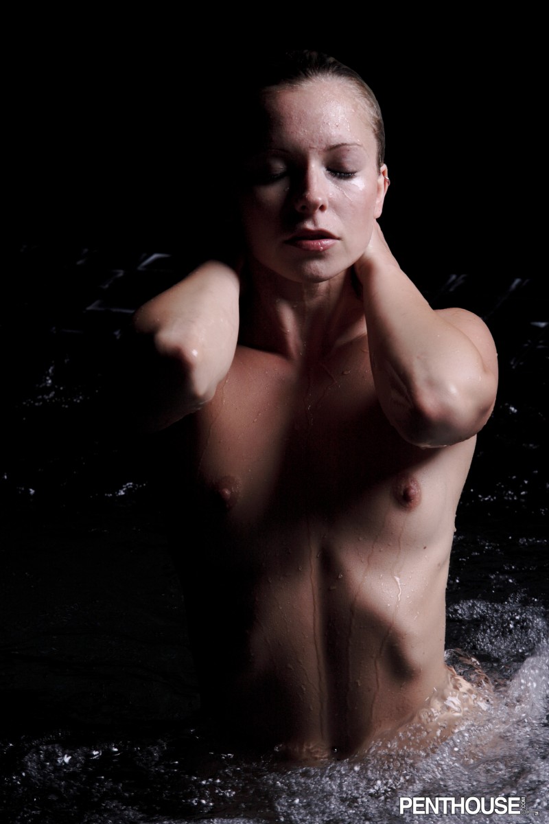 Lena Nicole strips out of her black bikini and enjoys a sexy dip in the pool.