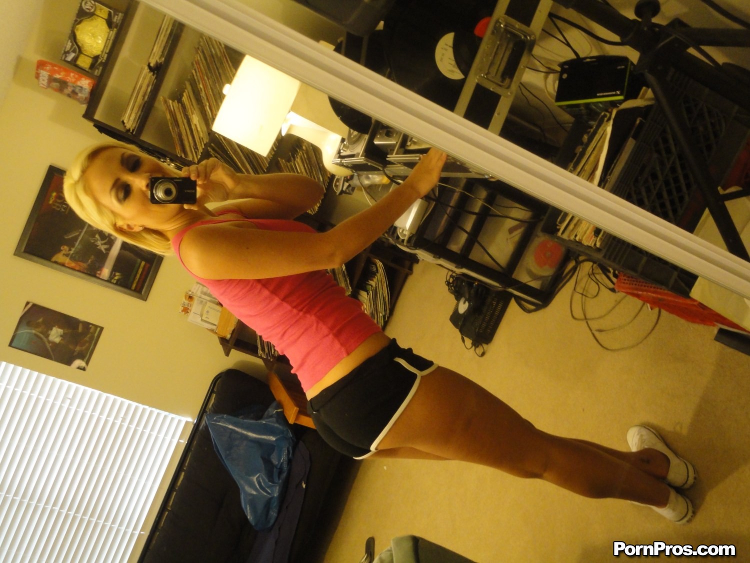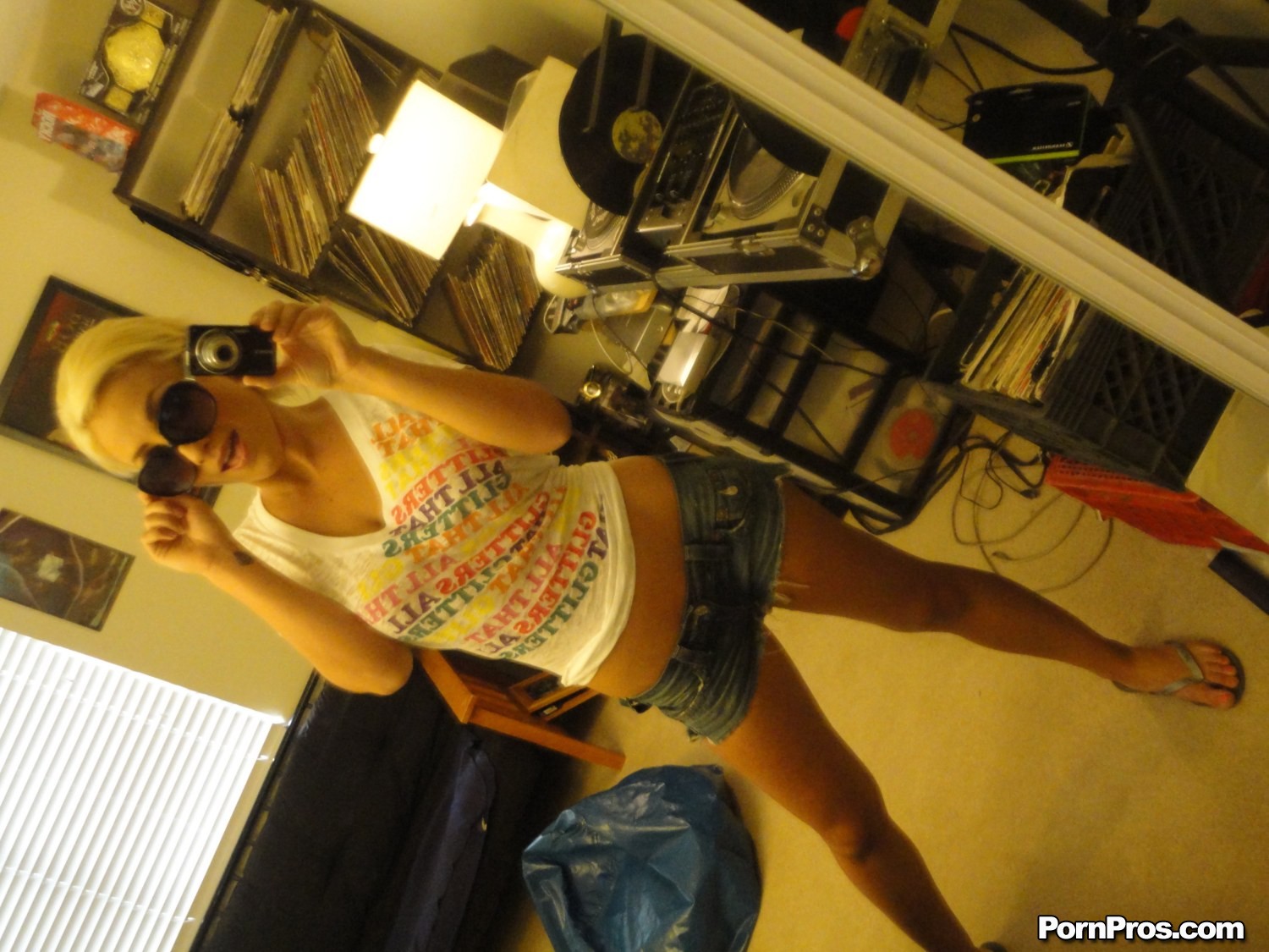 Beautiful blonde spends days naked. She listens to music, reads books and, finally, serves dick
