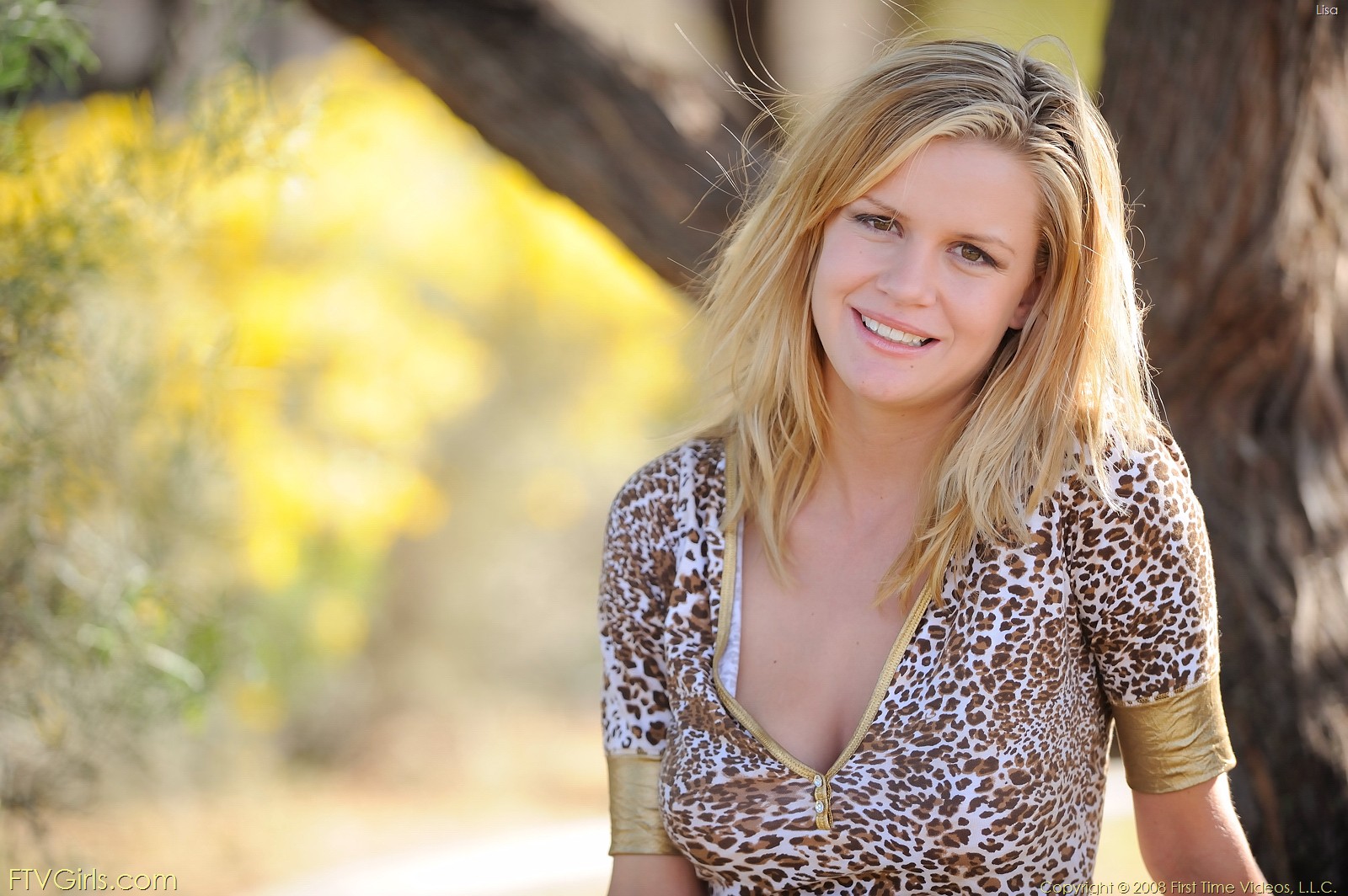 Lisa Neils clims onto a tree but for she has no panties on her pussy becomes visible.