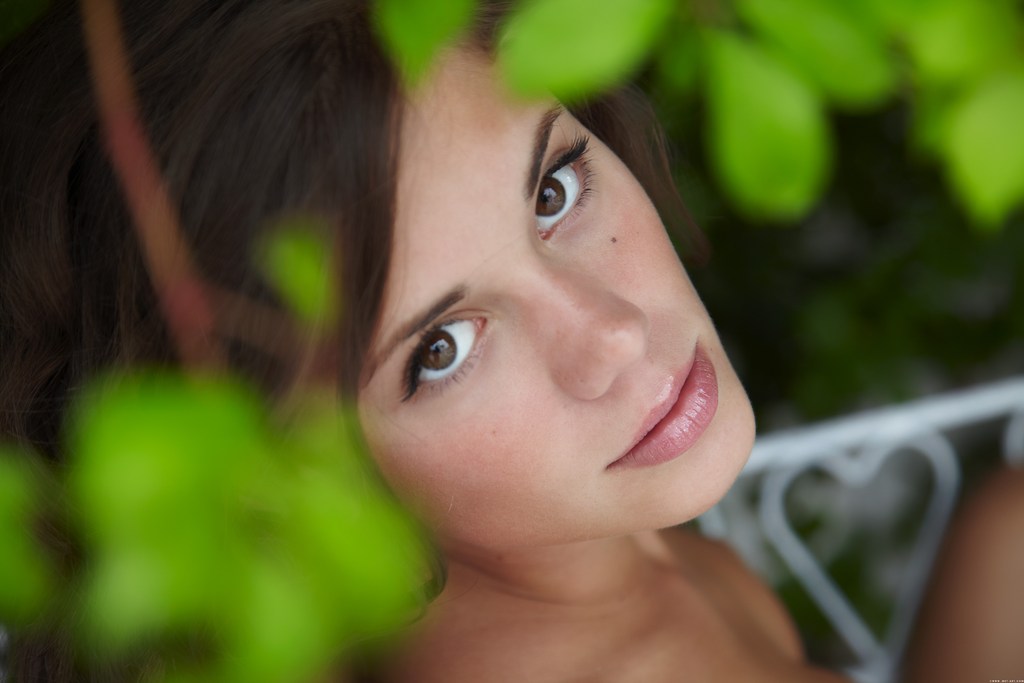 Busty brunette vixen Little Caprice strips outdoors and shows her big jugs.