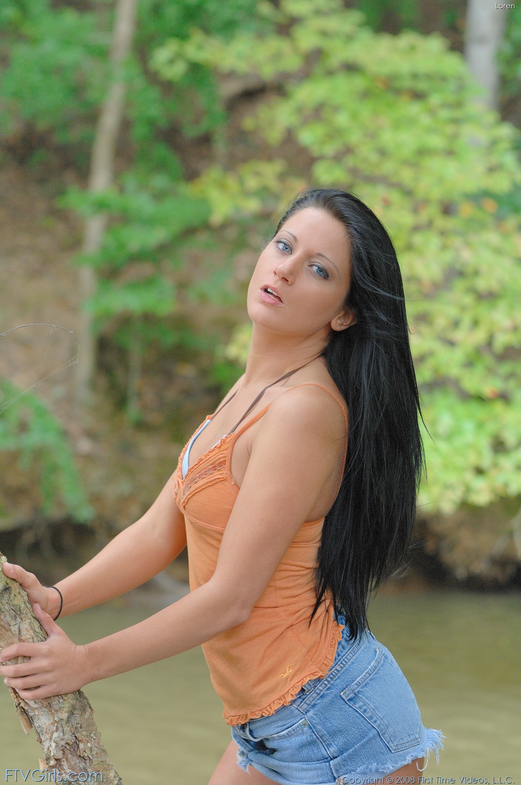 Gorgeous Loren FTV goes for a walk along the river to perform a striptease there.