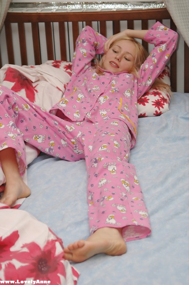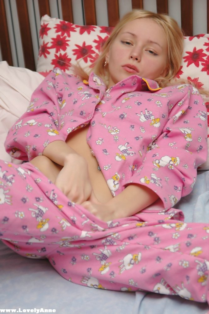Hot teen gal lovely Anne gets ready for sleep and masturbates passionately in her bed.