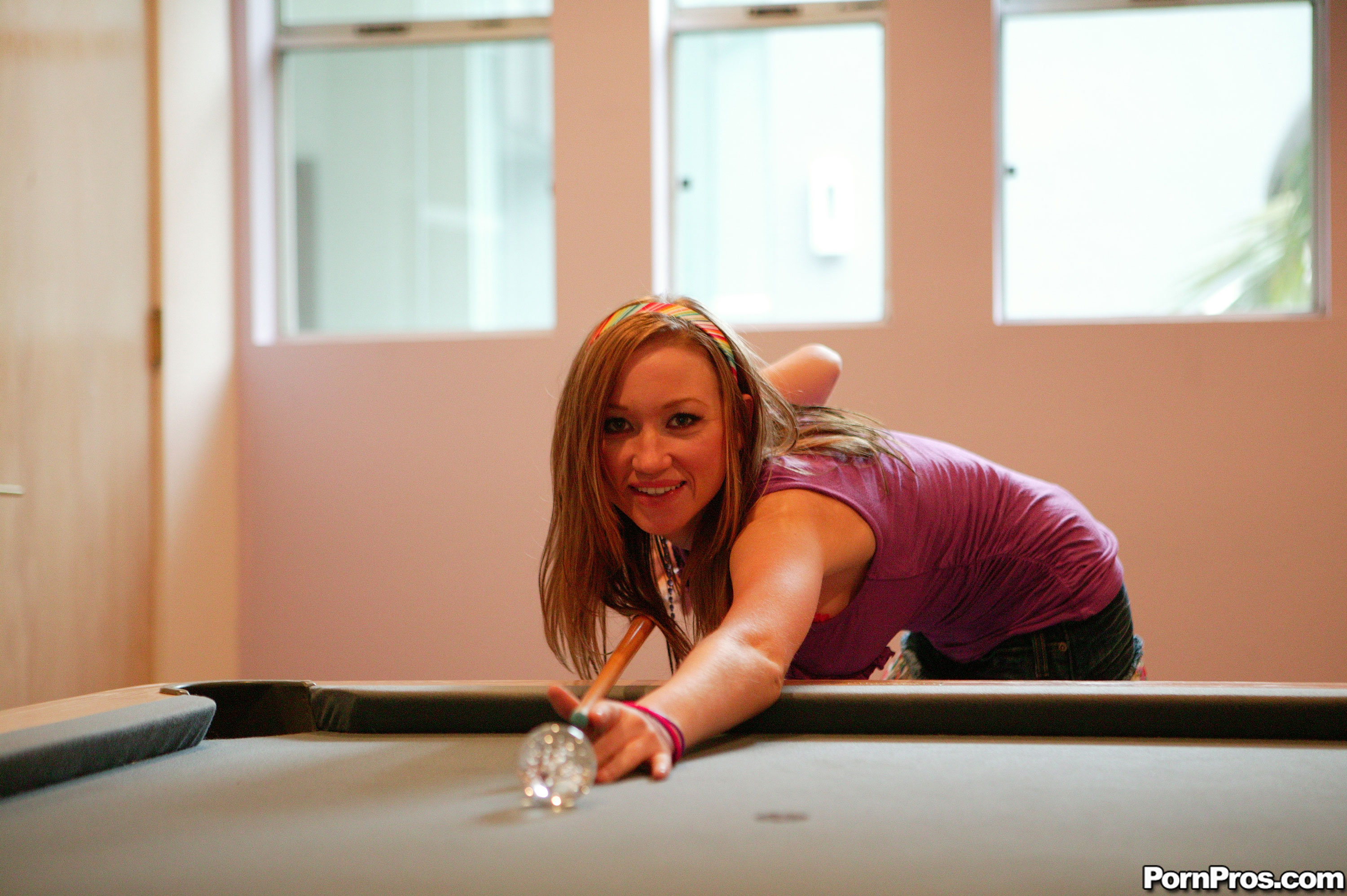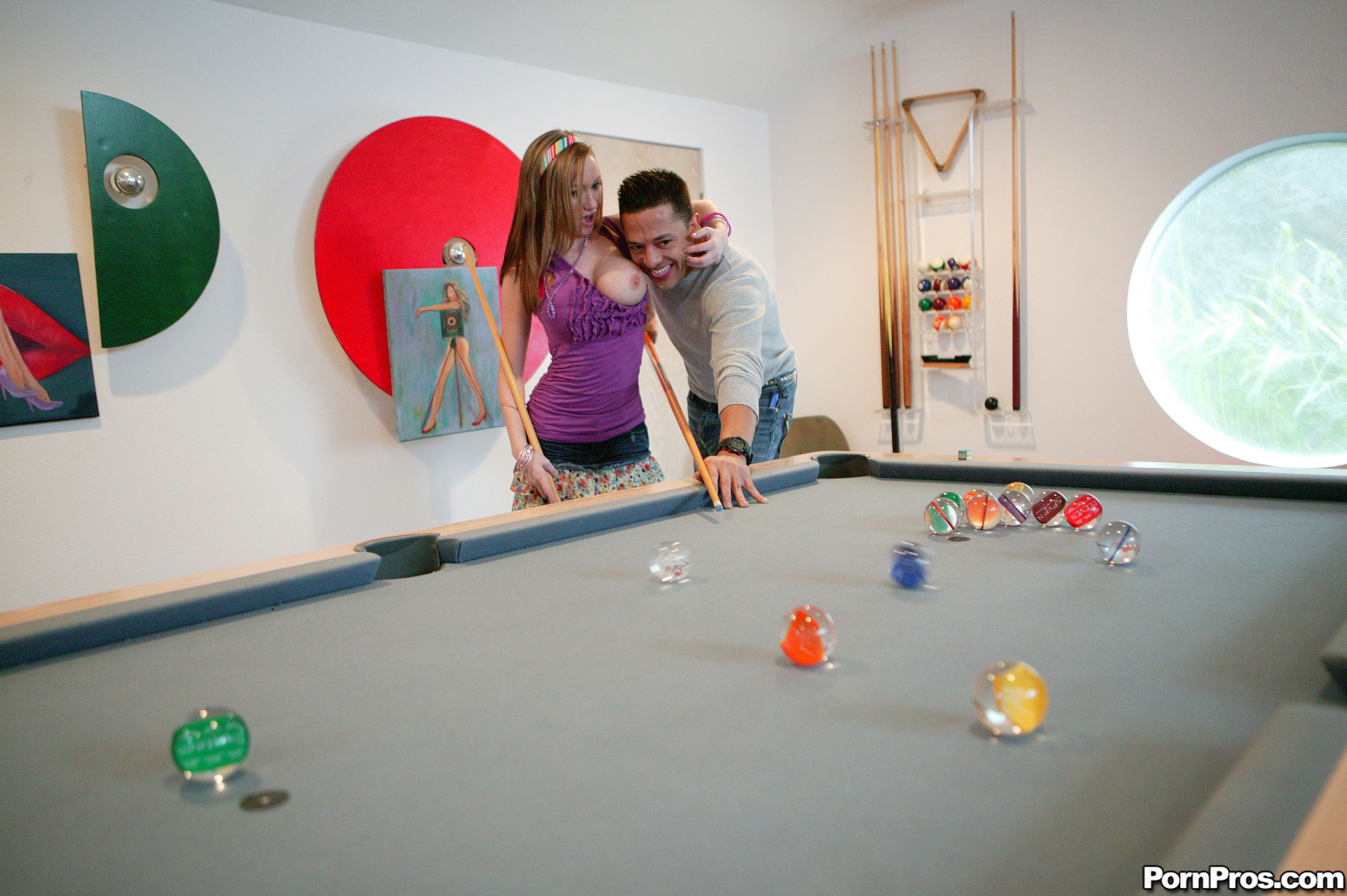 Naughty lovers were playing pool. Very soon, the hottie found herself tied up, gagged and clamped