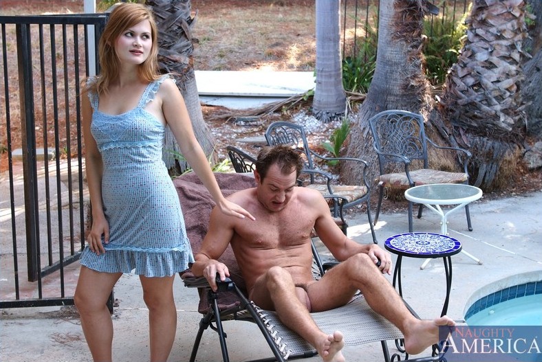 Marina Maywood drops down her cute and sexy dress and gets her nasty pussy fucked.