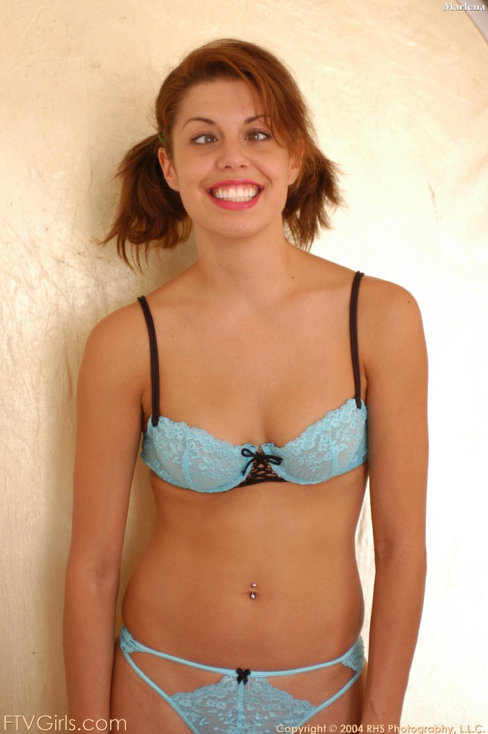 Foxy redhead babe Marlena FTV takes off her lingerie and shows her curvy body.
