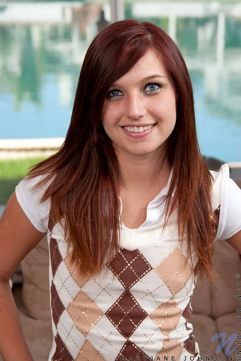 Cute redhead teen ga lMary Jane Johnson strips her mini skirt and shows her hot ass.