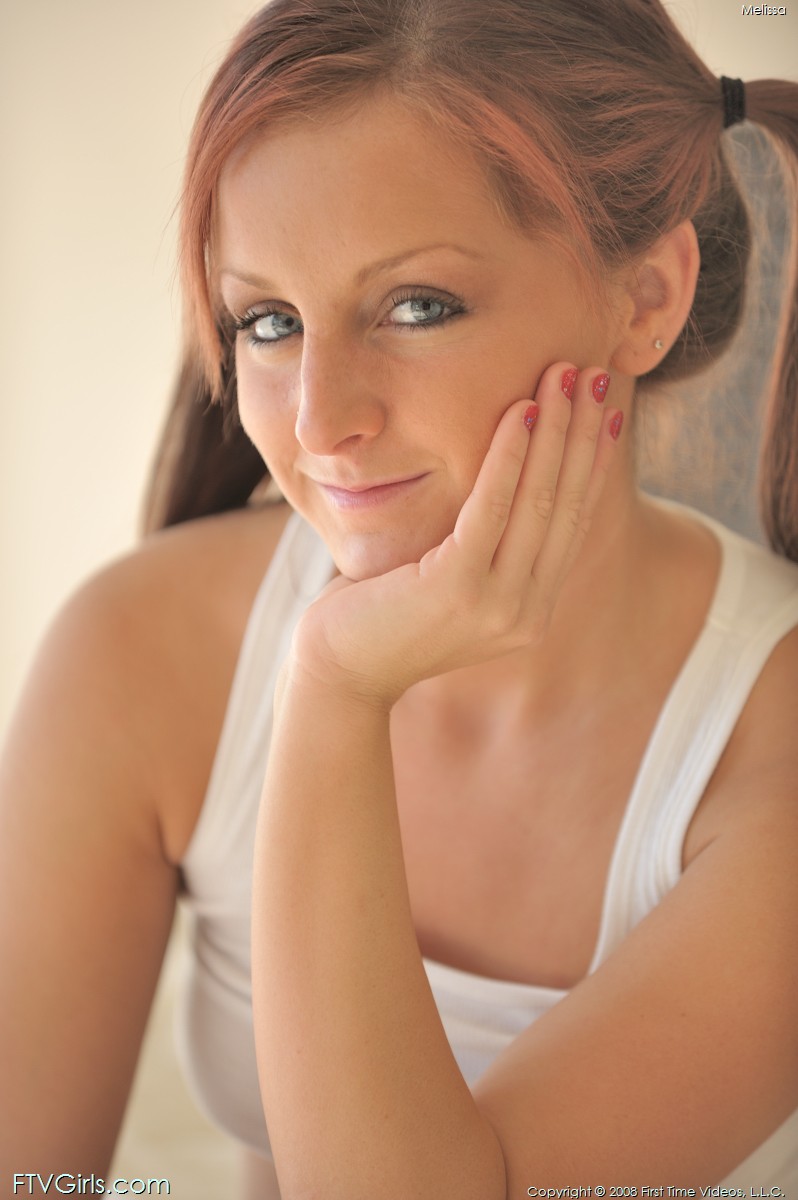 Melissa Matters gets off her white shirt and blue miniskirt and shows her body.