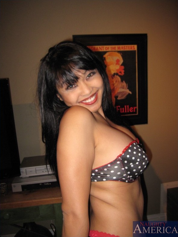 Kinky Asian bitch Mika Tan strips her black lingerie and shows her big breasts.