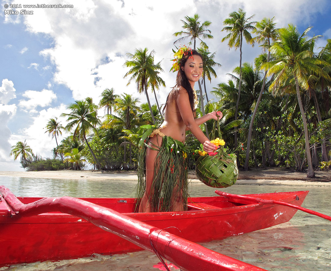 When the days are hot, Miko Sinz wears only a tiny bikini which she takes off fast.