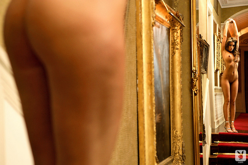 Monica Leigh takes her clothes off on the bed and shows us her big round jugs.