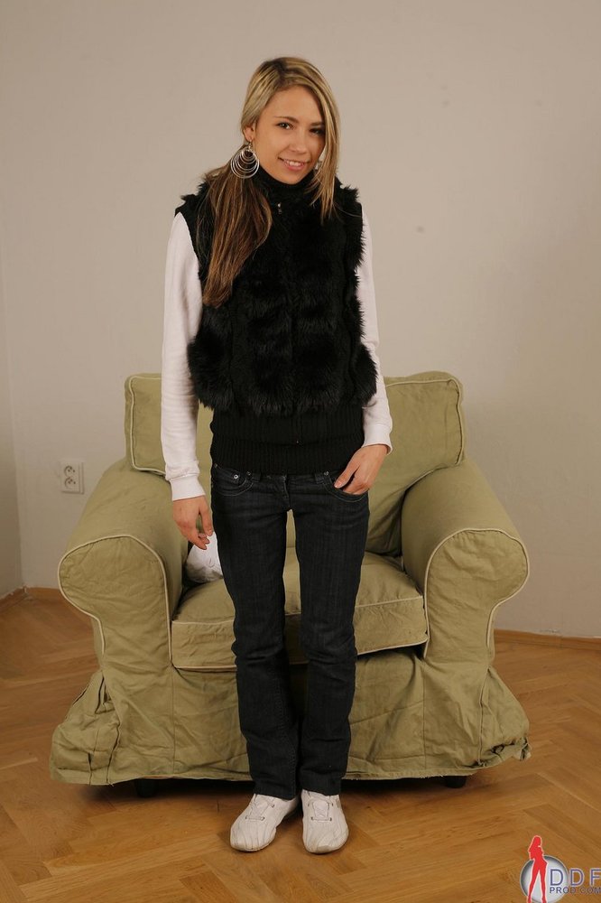 Innocent looking blonde Monica Sweet with handsome body and small muffins stripping.
