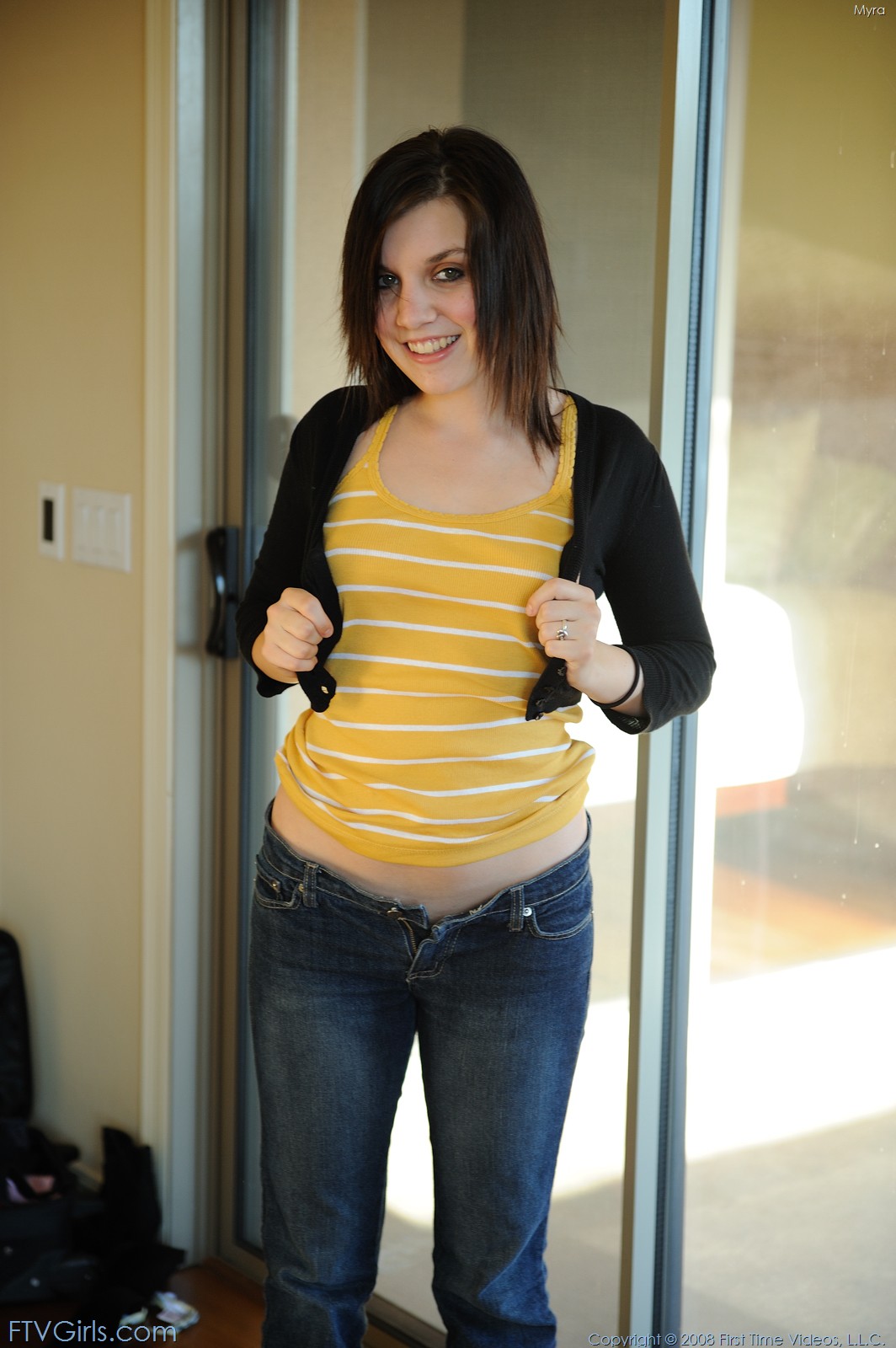 Attractive teen gal Myra FTV takes off her blue jeans and shows her tight ass.