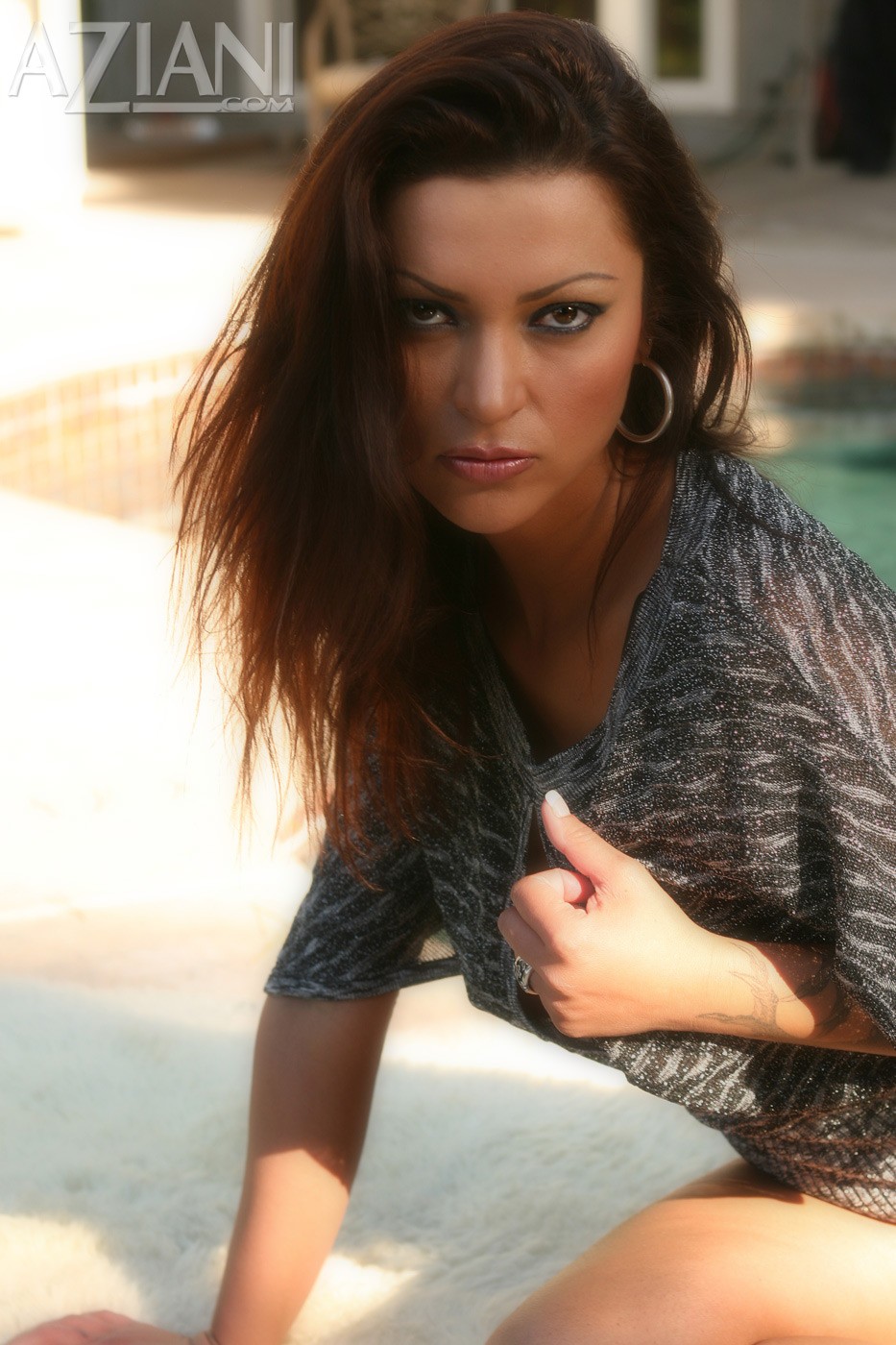 Passionate momma Nikita Denise showing her tight booty and shaved pussy outdoor.