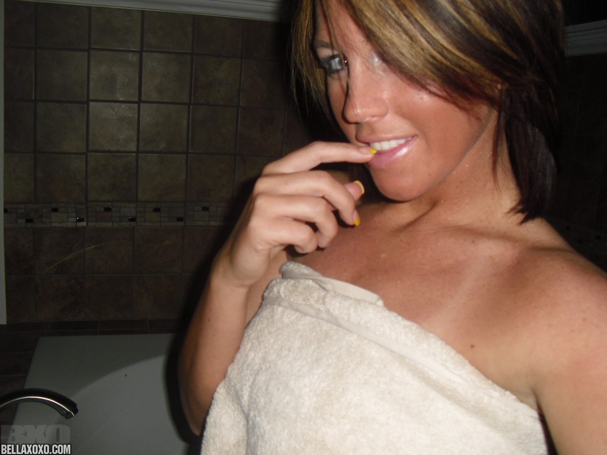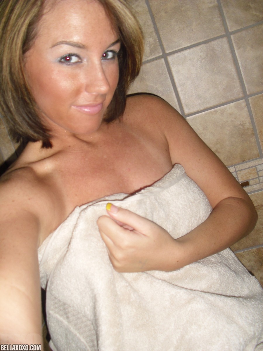 Hot teen babe Nikki Anne strips in her dorm room and shows us her big jugs.
