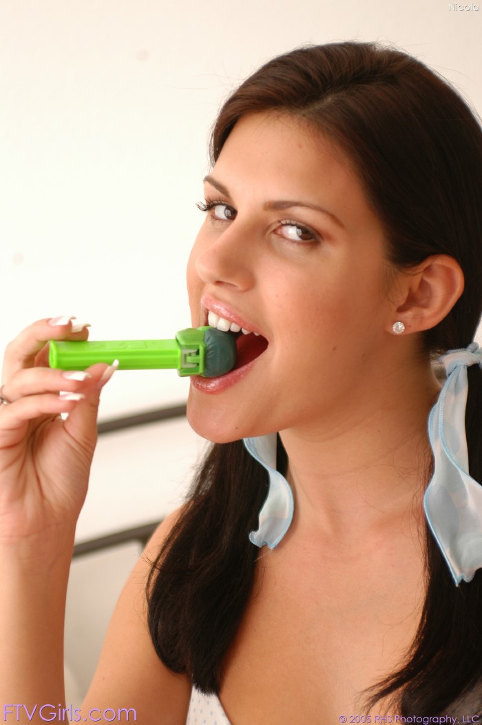 Cute babe Nikki Loren drops down her sexy clothes and licks her cute and sexy feet.