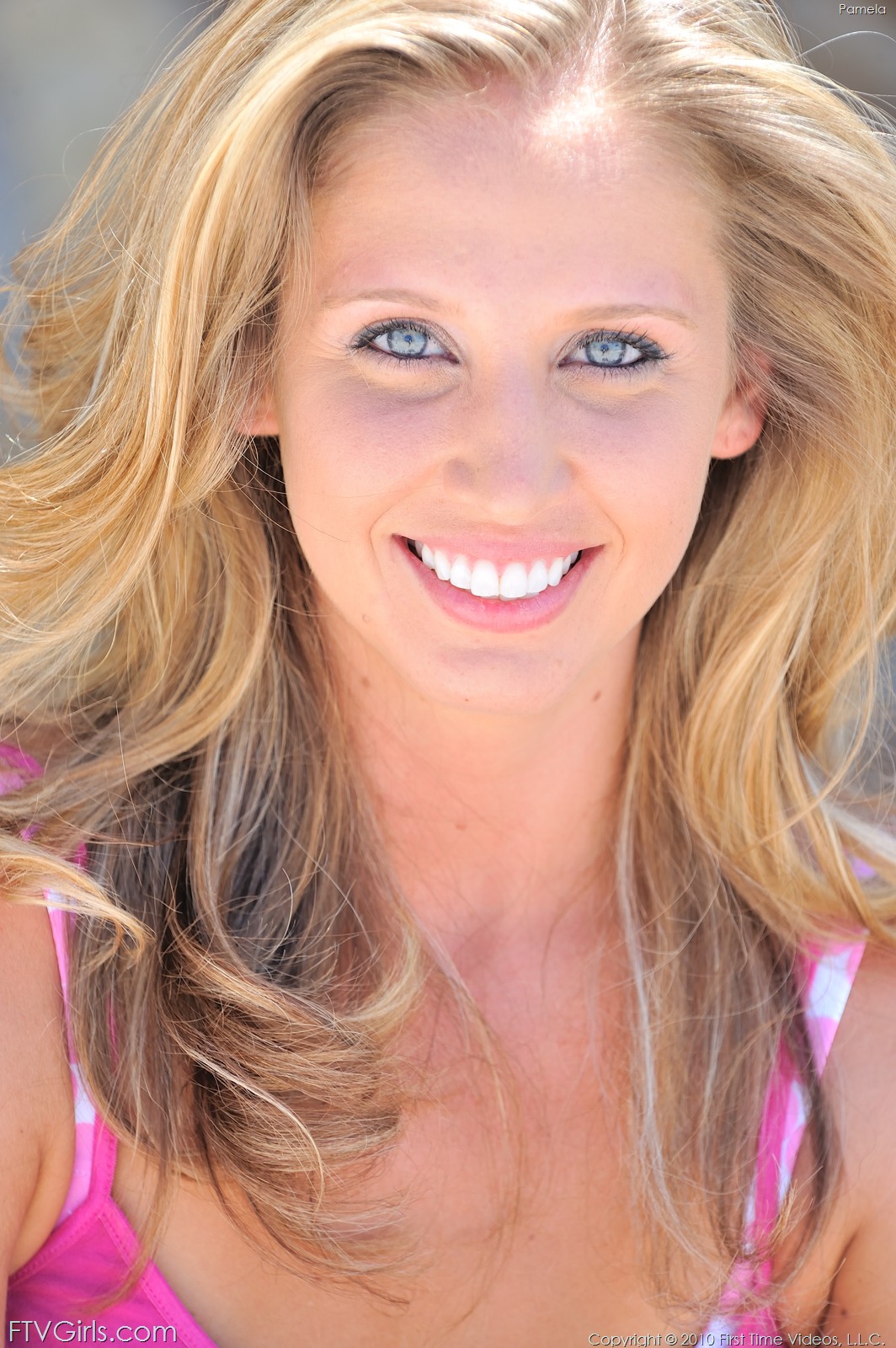 Hot blonde lady Pamela FTV takes off her skirt and exposes her hungry muff.