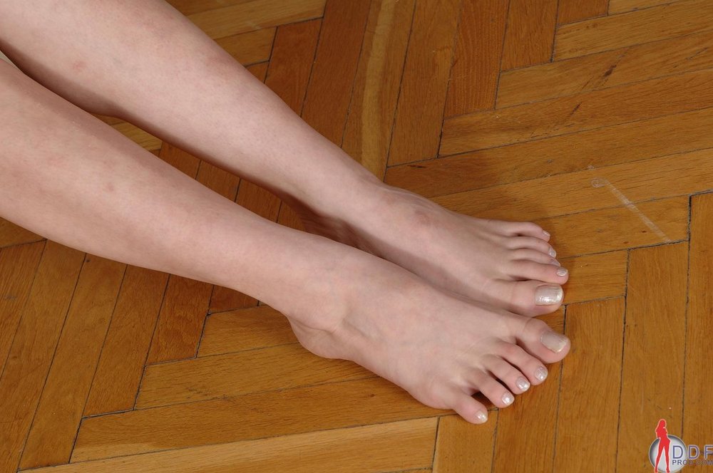 Handsome brunette Rebecca Contreras stripping white underwear and showing cunt.