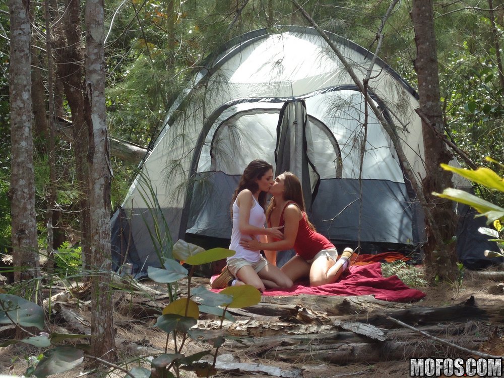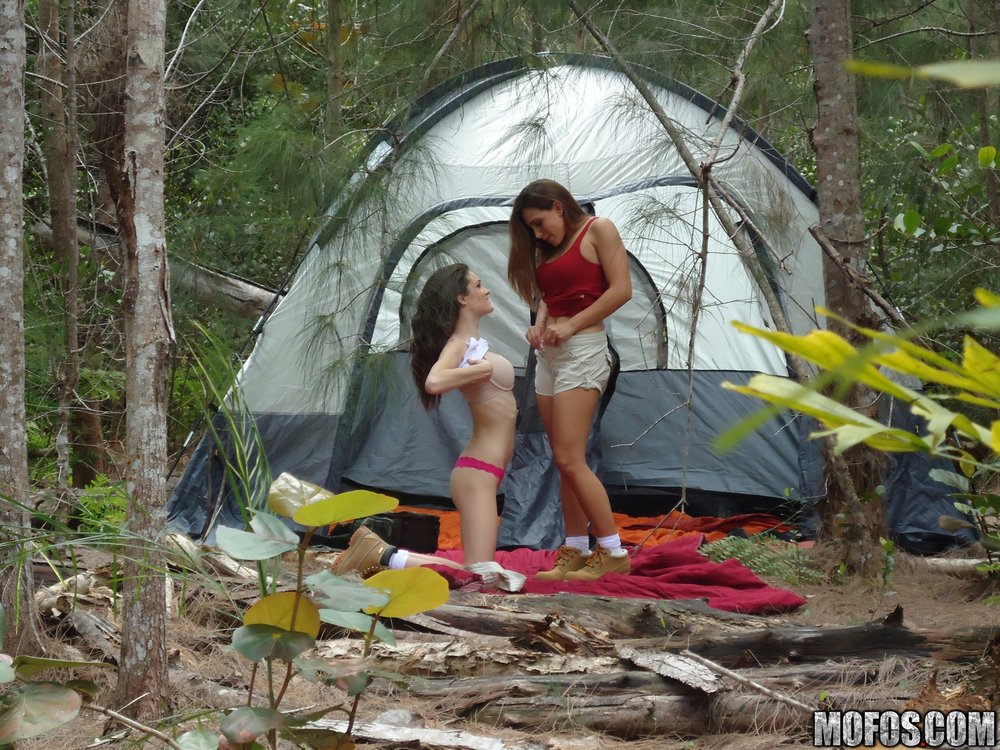 Renna Ryann and Monica Sexxxton strip on the camping trip and share a big dong.
