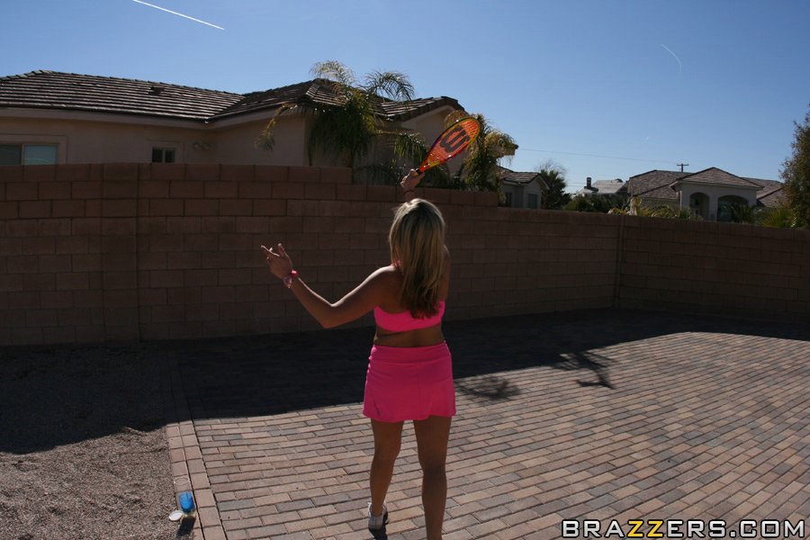 Cute blond girl Ruby Ryder sucking a cock and getting fucked after playing tennis.