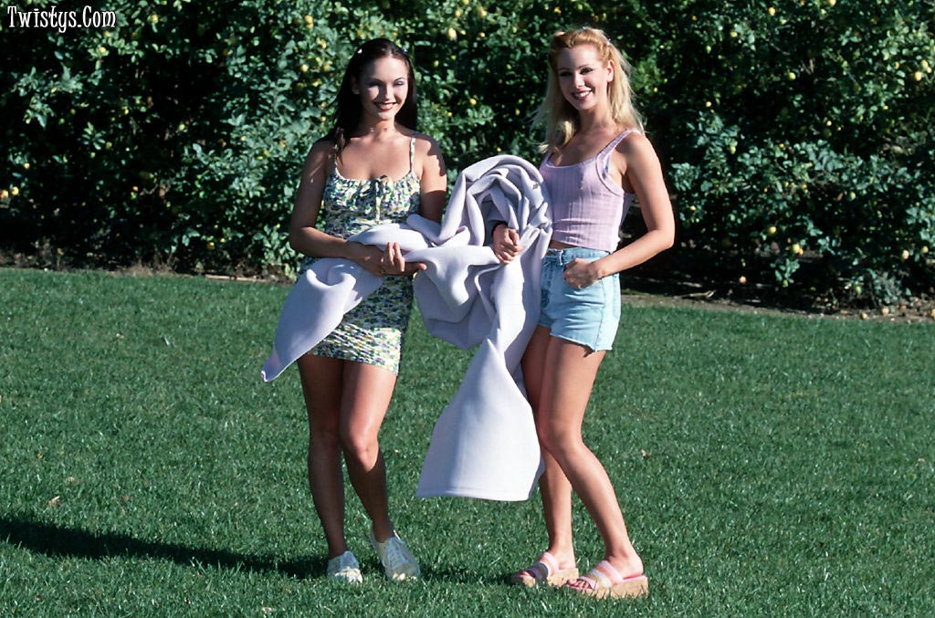 Alluring teen chicks Sandy and Venus have passionate dyke wild sex outdoors.