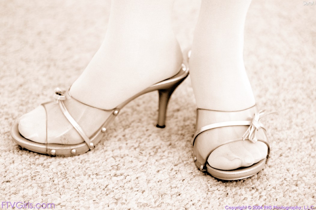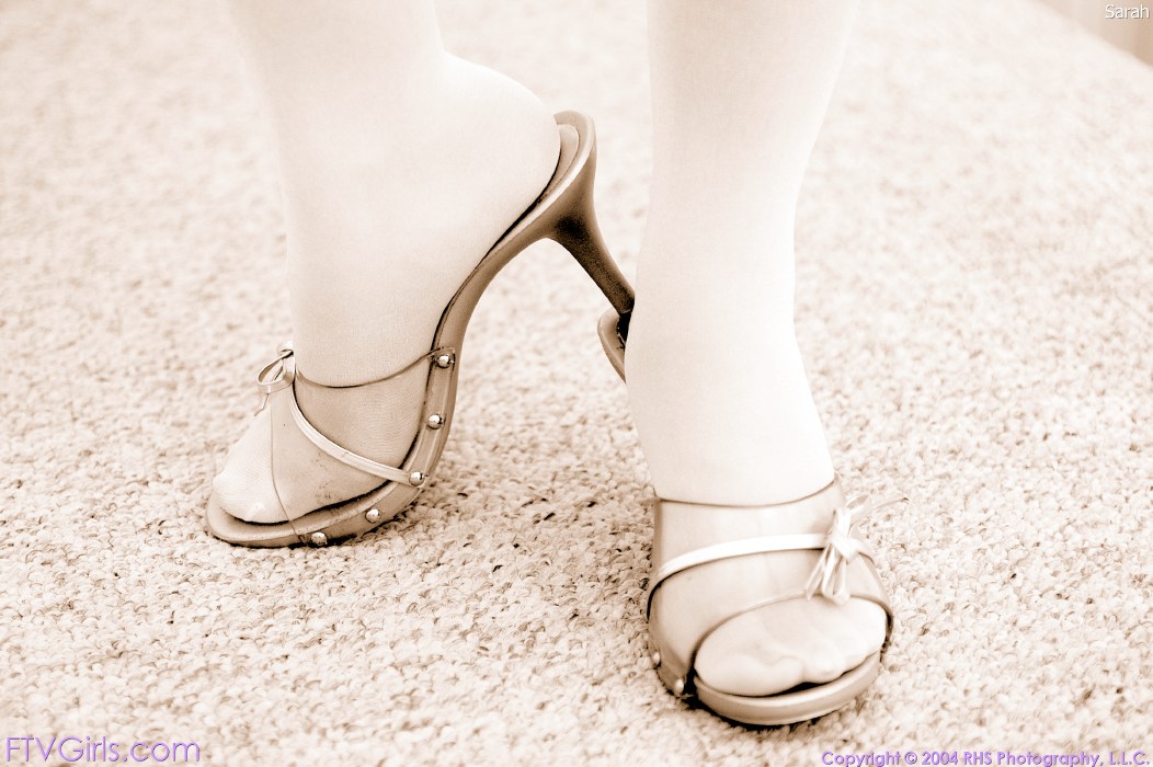 Sarah Blake uses her panties to make herself horny in the stairway in her high heels.