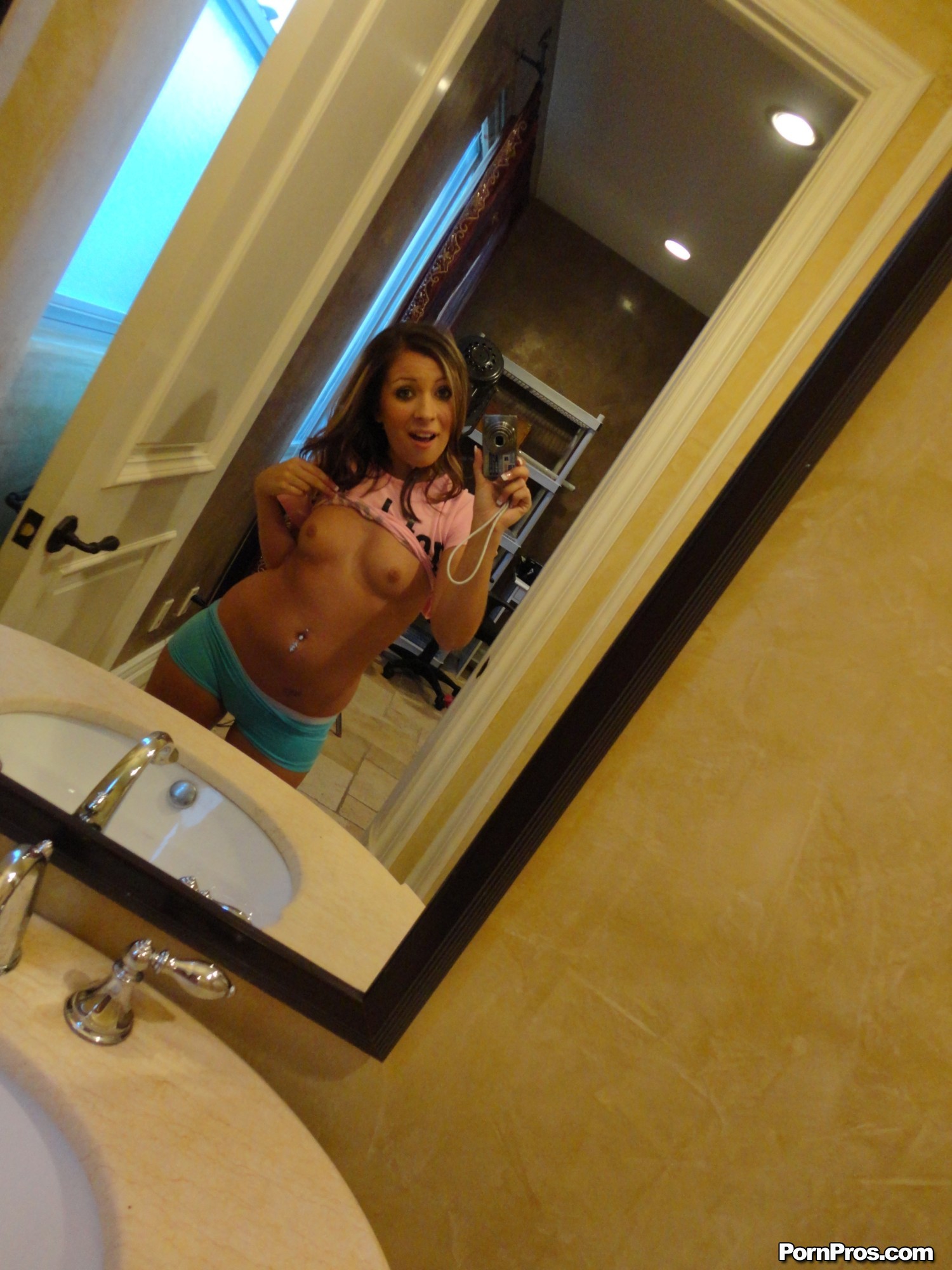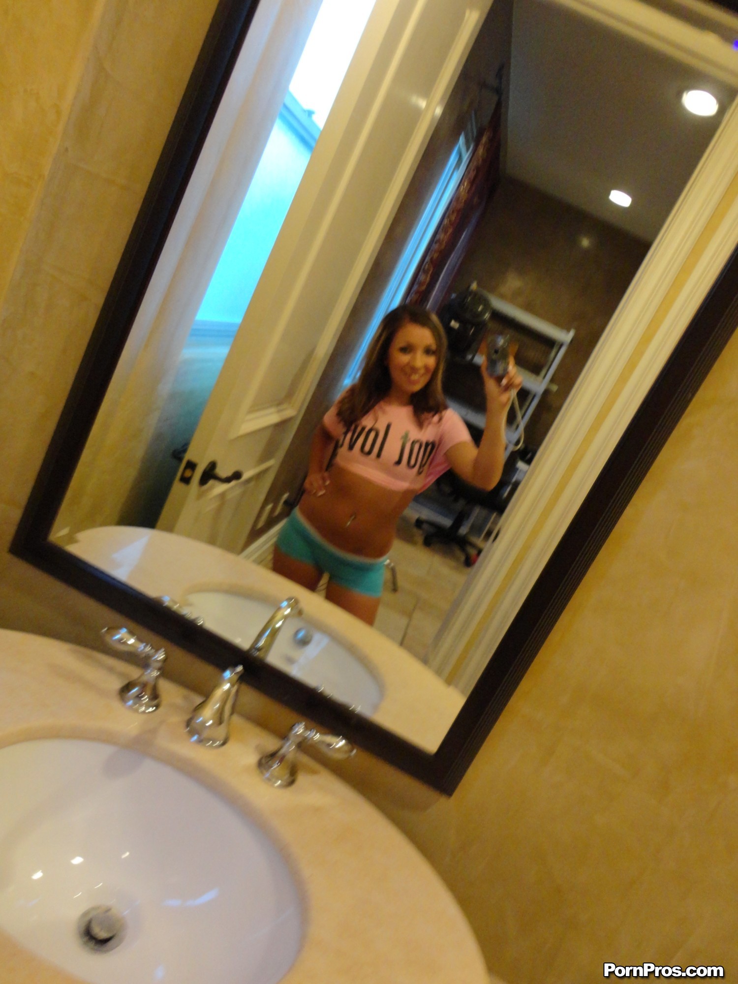 Alluring teenage hottie takes off her pink shirt and gets nasty with her well hung lover. She's hot!