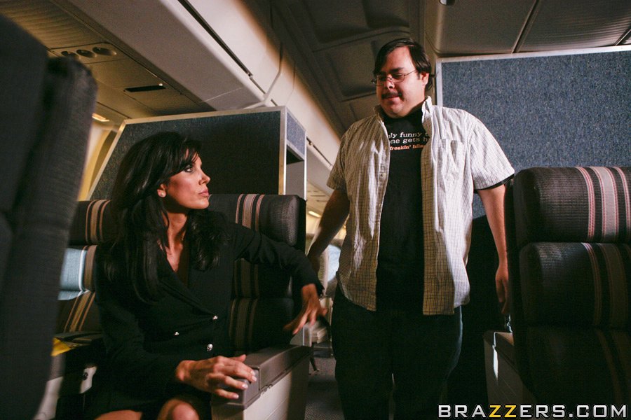Classy brunette businesswoman Shay Sights strips in the plane and fucks the pilot.