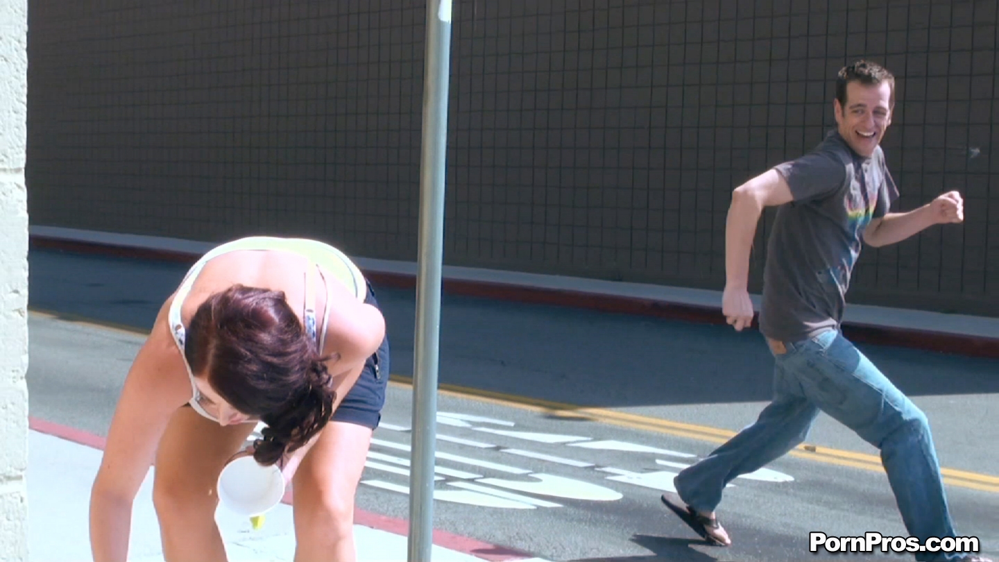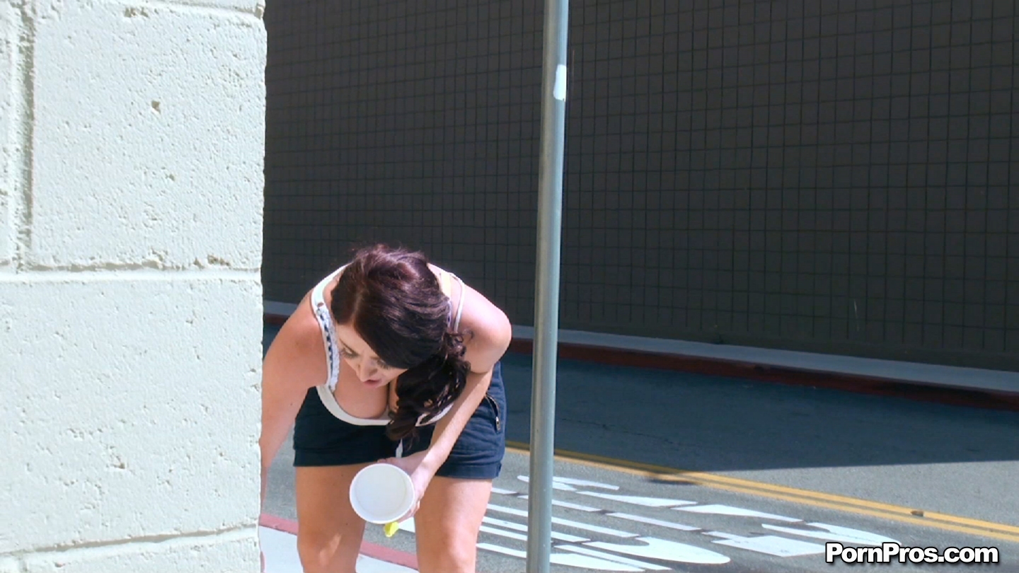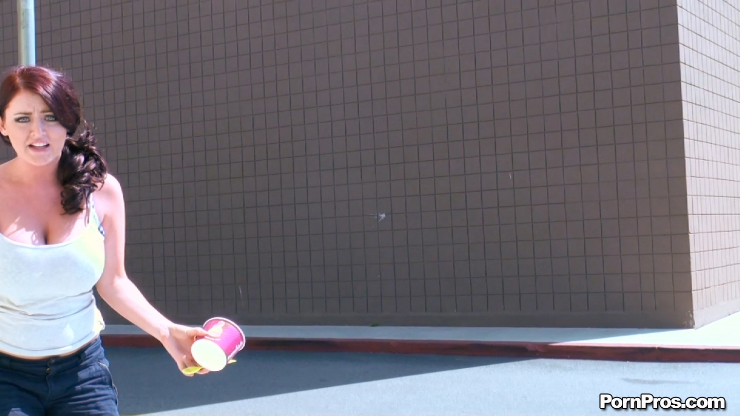Gorgeous porn slut eats icecream during a lovely summer day and displays her big boobs